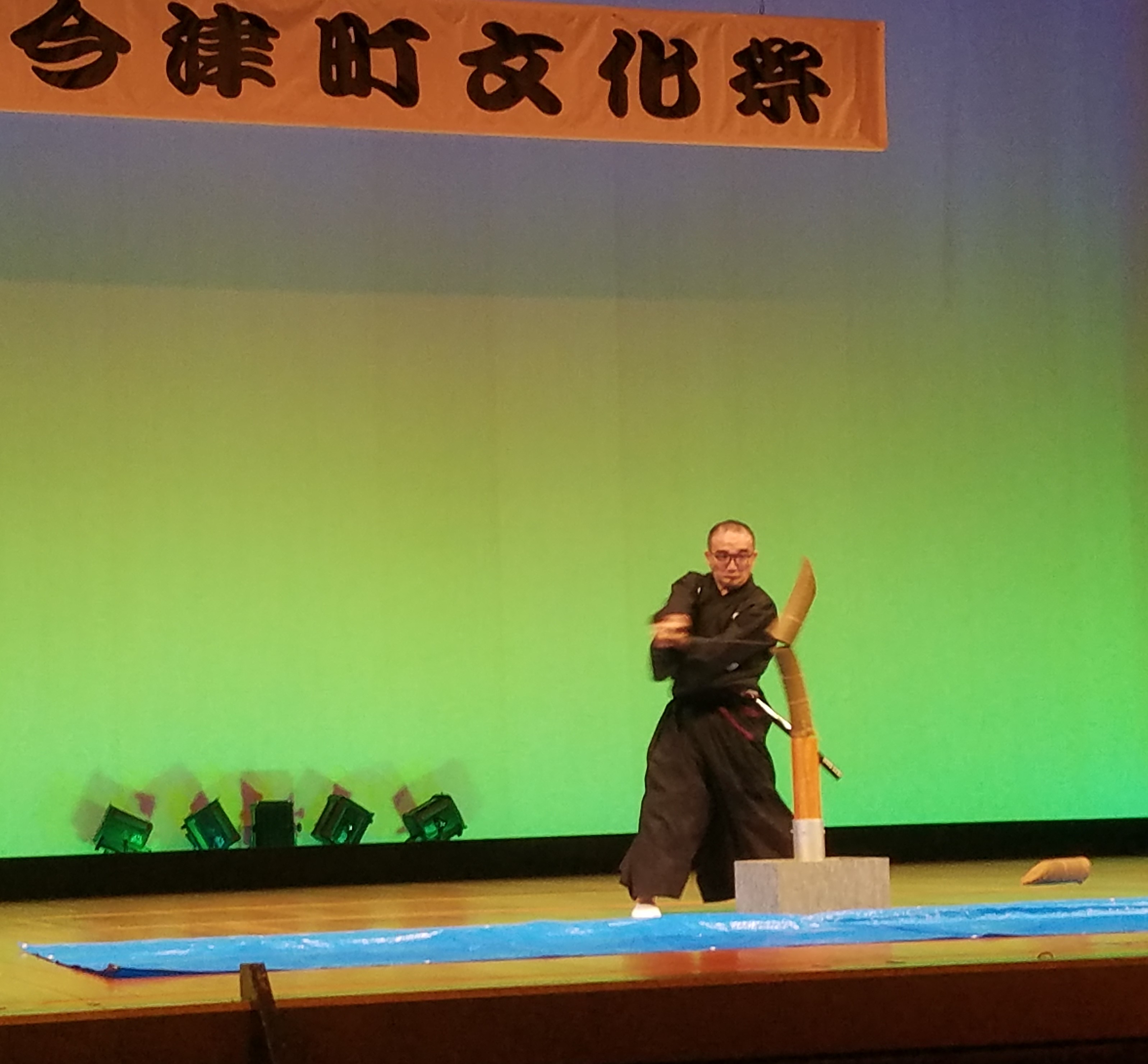 高尾剣士の試斬奉納です。一度しか試斬稽古をしたことがないにもかかわらず、見事に斬れているのは立派です。
