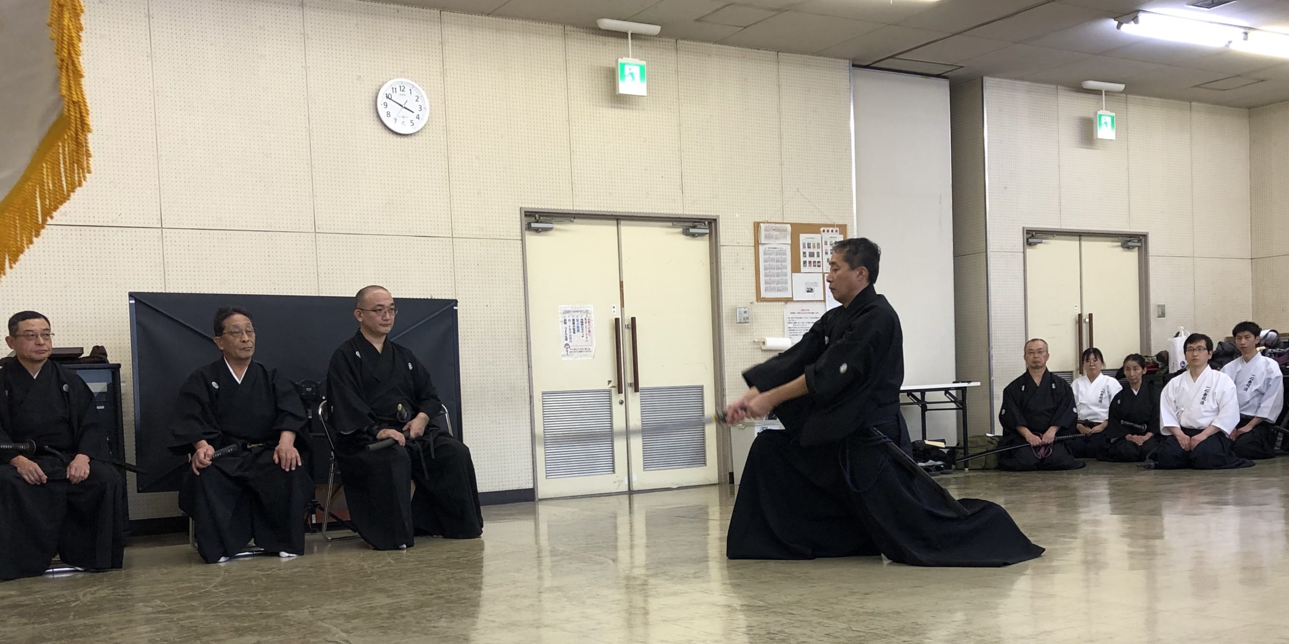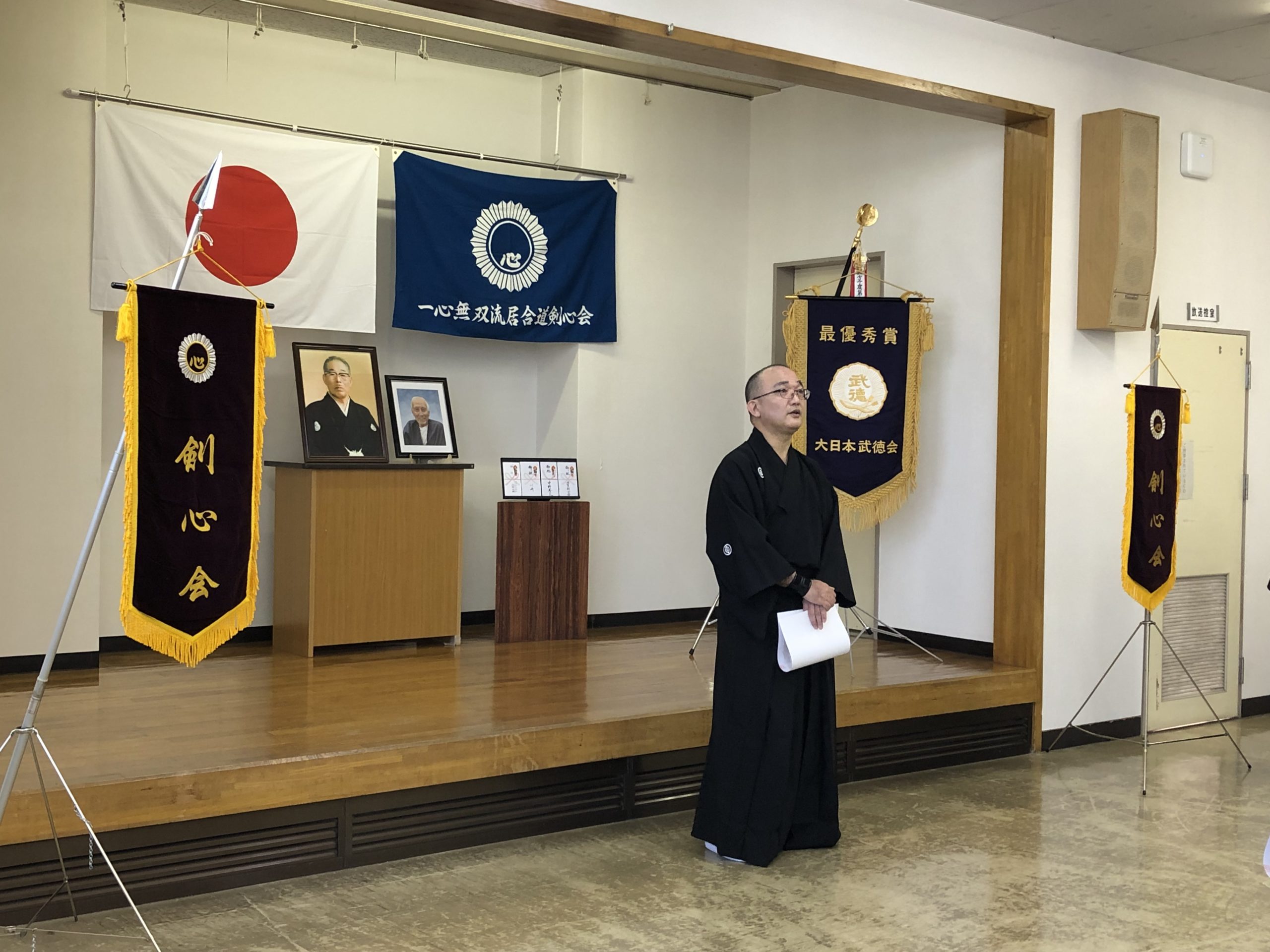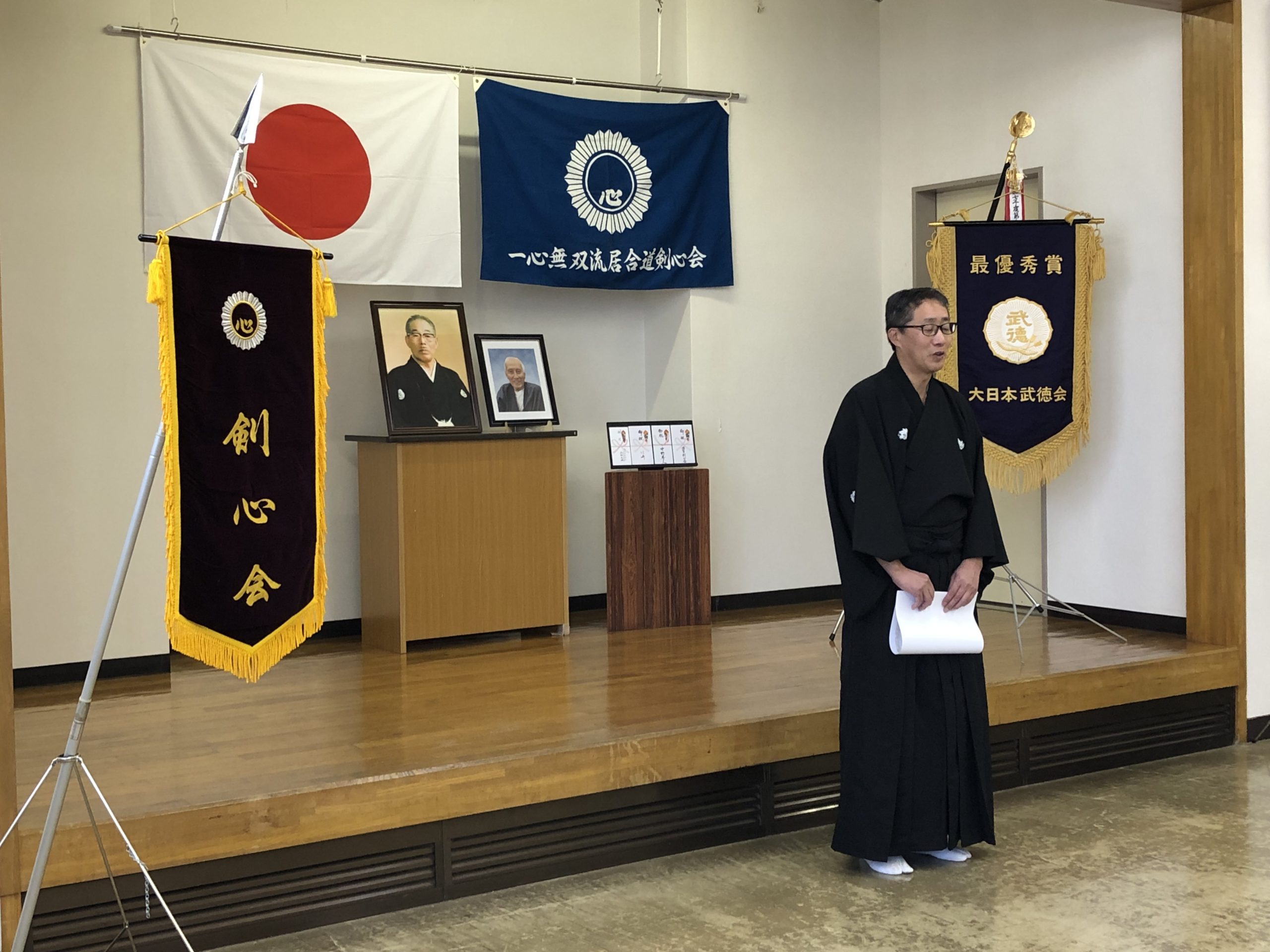 一方で、本会の代表である山田文典総師範が一般社団法人大日本武徳会の代表理事に就任し、日本だけでなく世界の古武道のため大日本武徳会の先頭に立って尽力することとなりました。剣心会会員一同が、山田文典総師範に頼るだけということでは当会は成り立たず、会員一同がそれぞれ自覚をもって心技体の錬成に励み、事務局運営にも積極的に協力するよう決意を新たにいたしました。